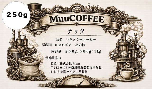 ナッツ|中煎り コロンビア複数ブレンド 香ばしく煎ったナッツのような風味。 落ち着いたコクがあります。