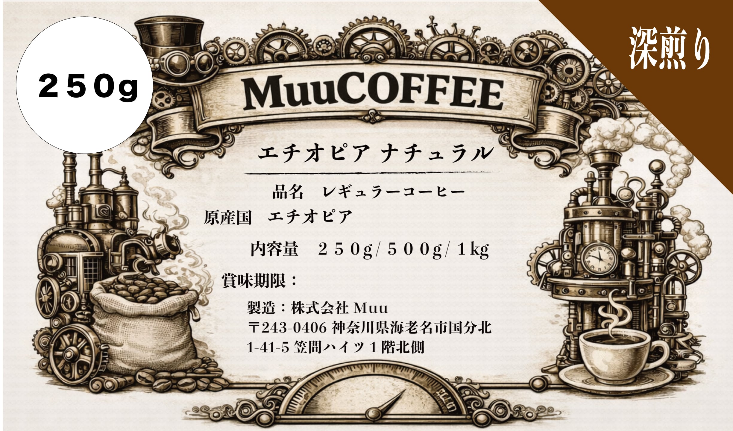 【250g】エチオピア ナチュラル 深煎り コーヒー豆