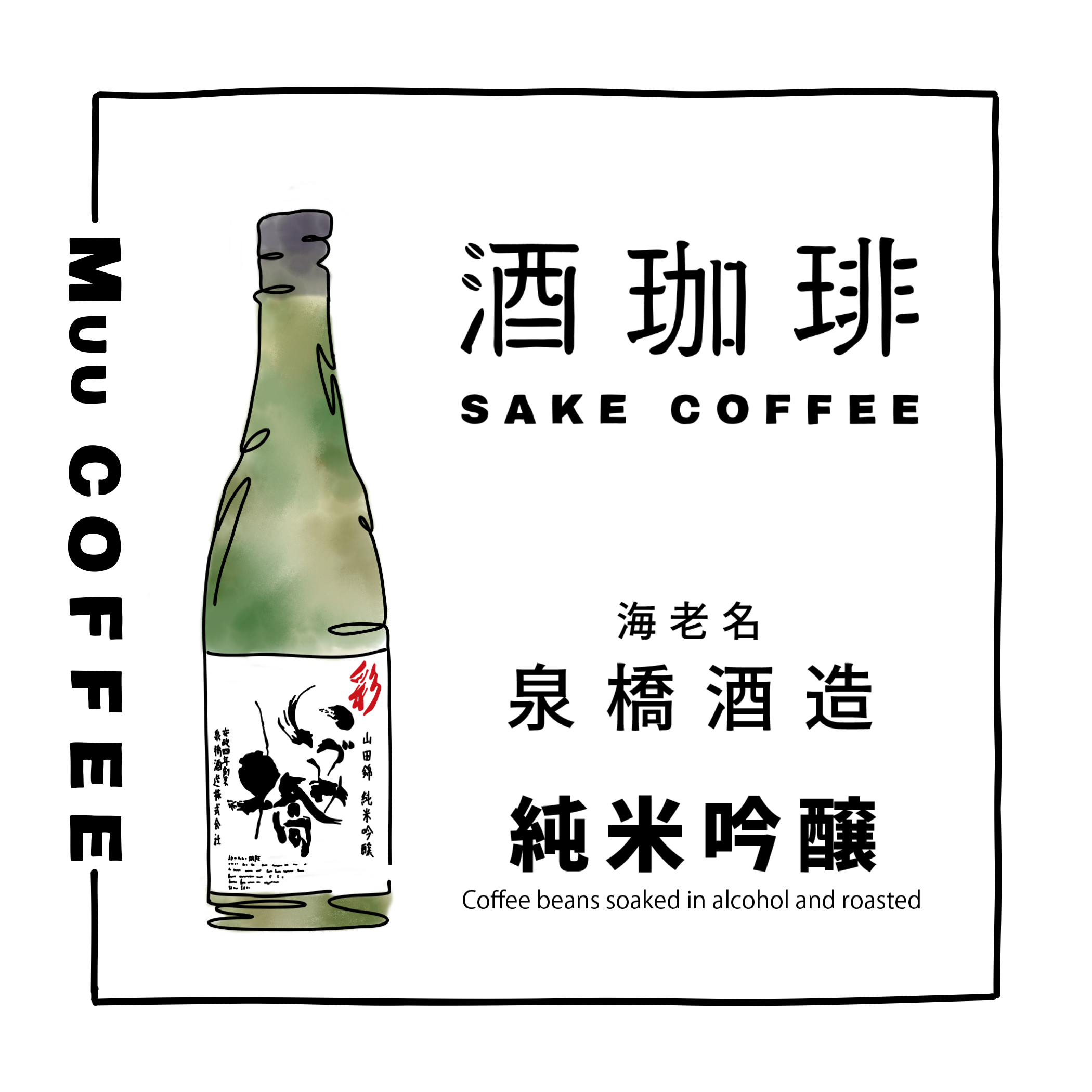 香り高く華やかな「彩~いろどり~」にコーヒー生豆を1週間〜1ヶ月漬け込むことで、日本酒独特の麹の甘さと旨味・コーヒーの風味、それぞれをしっかりと味わうことができる仕上がりに。後味からは、日本酒ならではのフルーティーさが感じられ、さっぱりと爽快感も得られる。